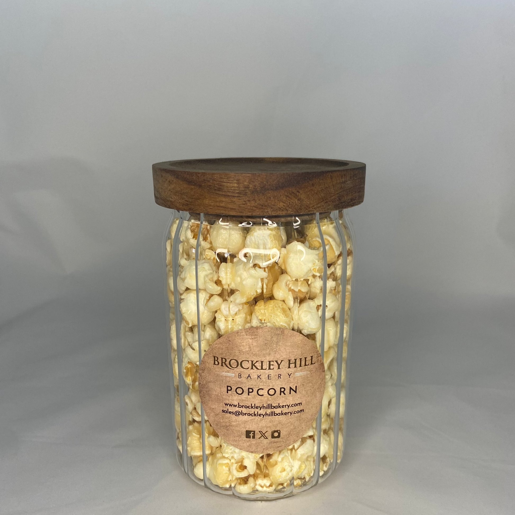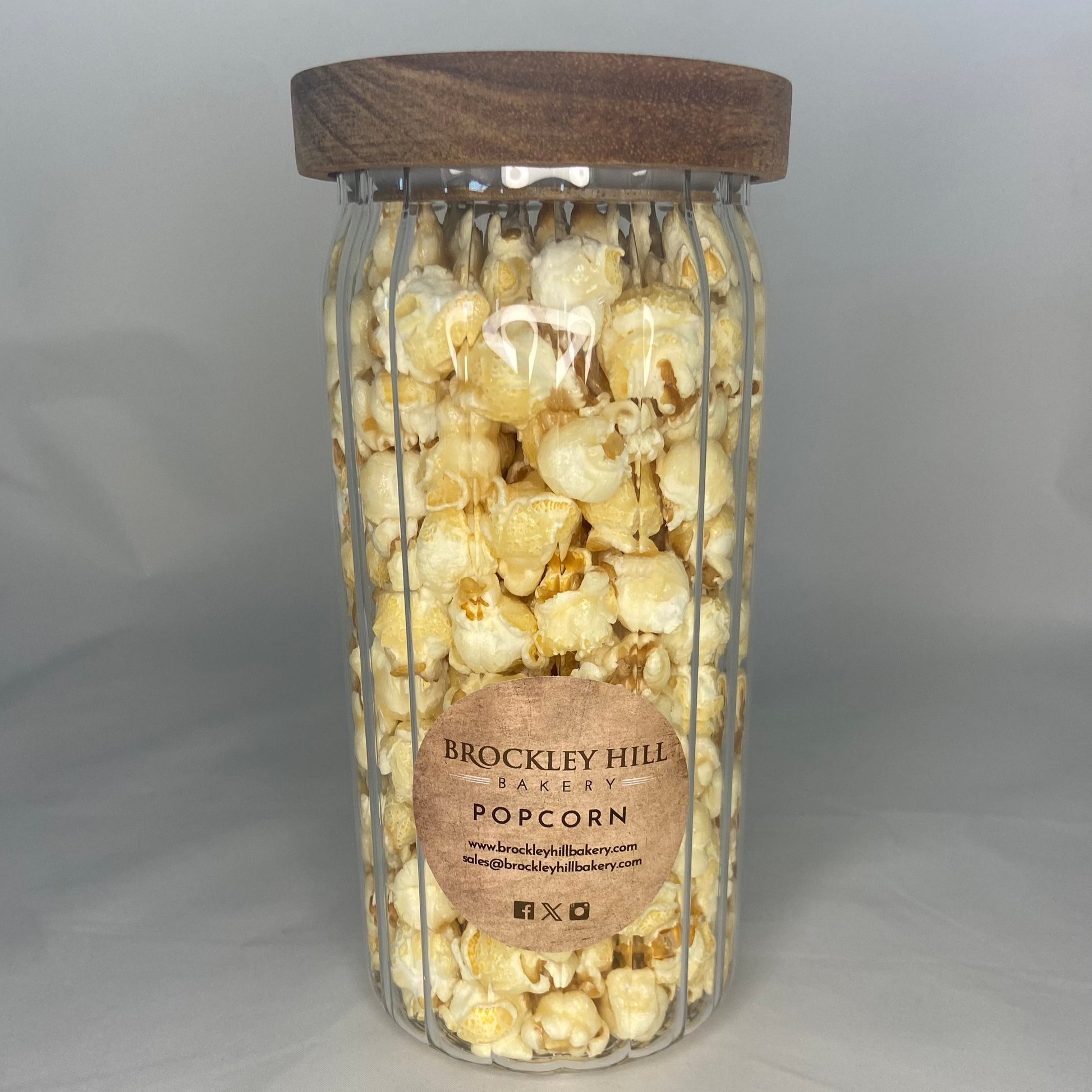 Ingredients: Toffee (83%) sugar, glucose, syrup, butter (milk), salt, caramelised sugar syrup, popped corn kernels,rapeseed oil, emulsifier, soya, lecithin.