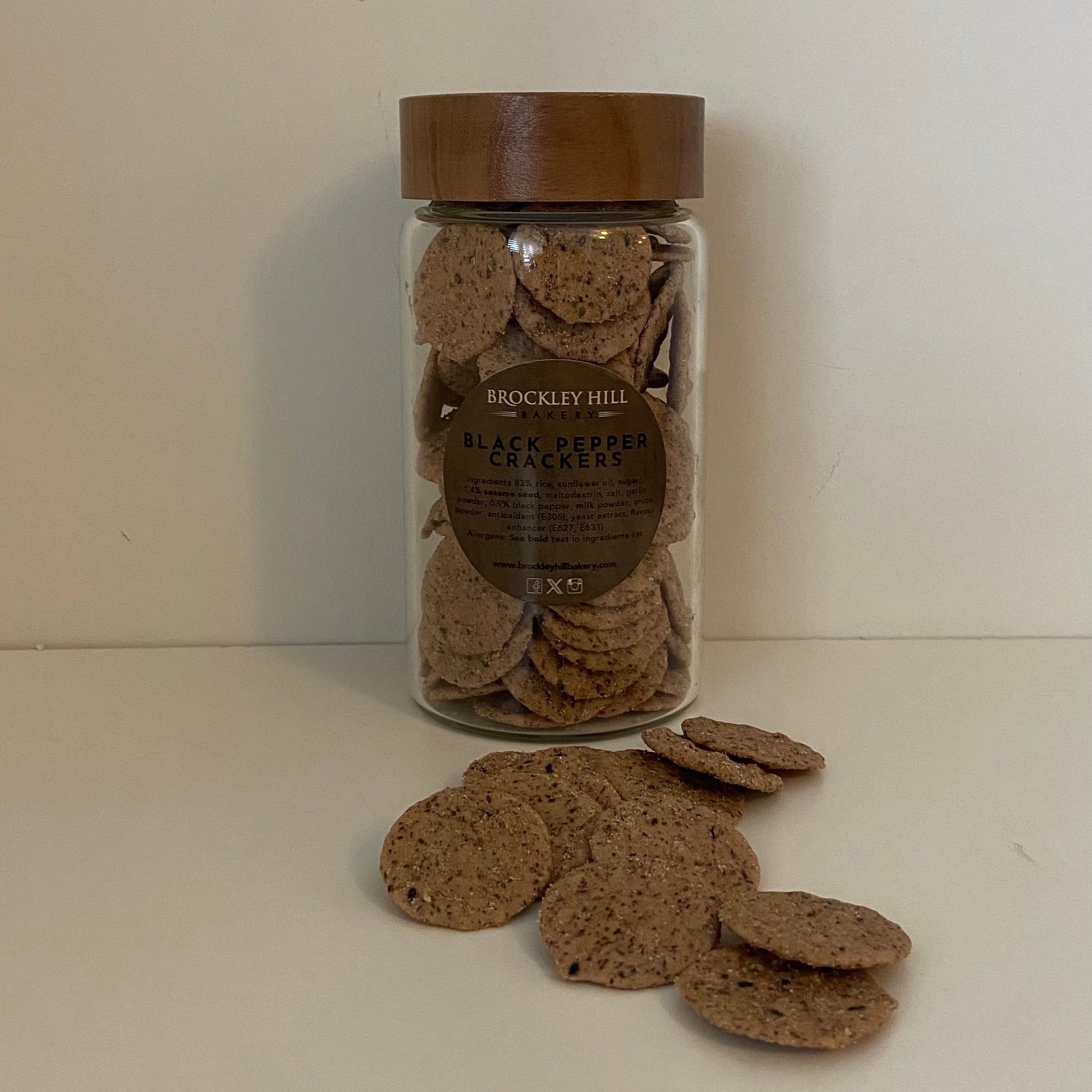 1 x 600 ml glass jar of black pepper crackers